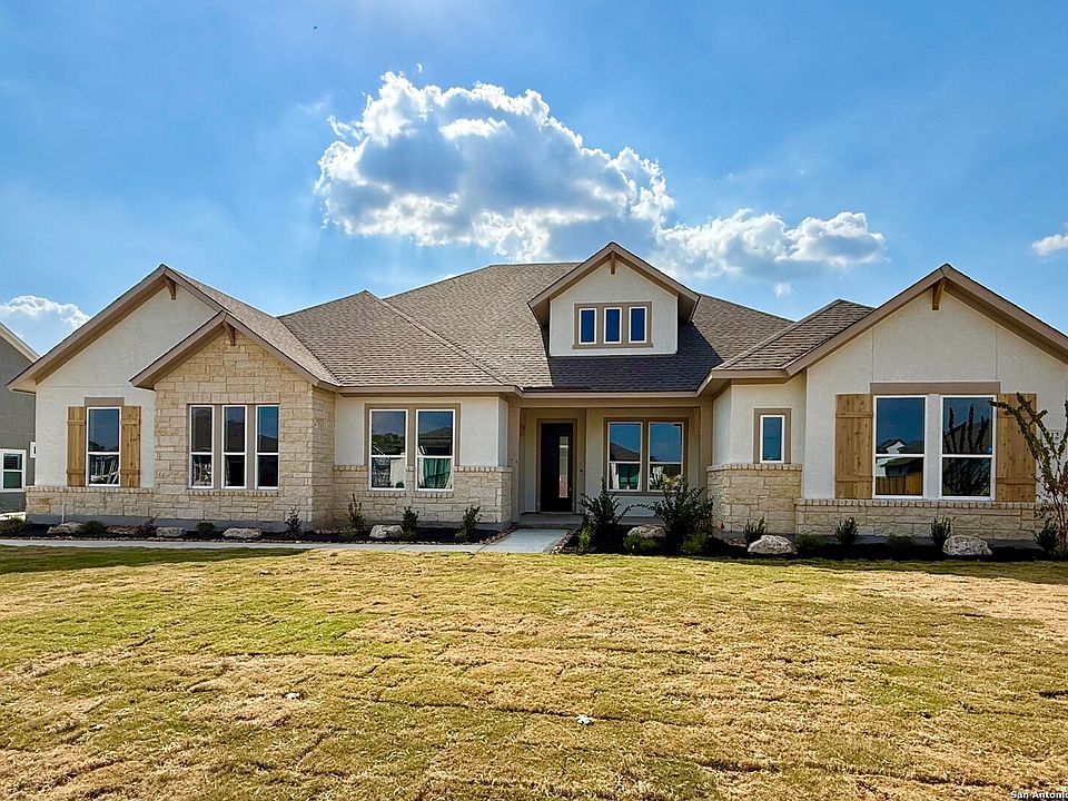 HAPPINESS ON THE HORIZON! Discover luxury living on the GREENBELT in this beautifully designed four-bedroom, four-and-a-half-bathroom home that blends comfort, style, and functionality. Thoughtfully crafted for both entertaining and everyday living, this spacious residence features an open-concept layout with abundant natural light and high-end finishes throughout. Upstairs, a large game room offers the perfect retreat for movie nights, playtime, or casual gatherings. Each generously sized bedroom includes its own en-suite bath, providing privacy and convenience for family members and guests alike. Step outside to your private oasis, where an elegant outdoor fireplace creates a cozy ambiance throughout the year. The covered patio overlooks a serene greenbelt, offering a peaceful backdrop and added privacy with no rear neighbors. This home is a rare find that combines upscale amenities with nature-inspired views-perfect for those seeking both sophistication and serenity. Visit David Weekley Homes at Megan's Landing to learn more about this new home for sale in Castroville, TX.