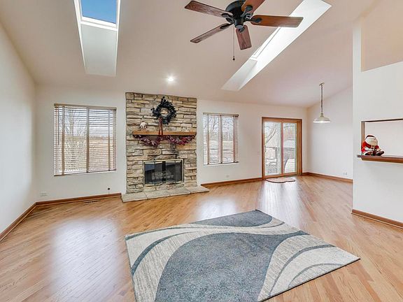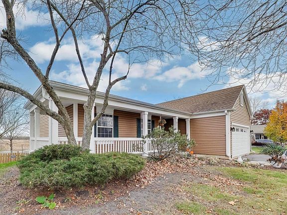 Welcome to this move-in ready 3 bed, 3 bath ranch home in the Savanna Springs subdivision. The home features a spacious and open layout with freshly refinished hardwood floors, brand new carpet, and fresh paint throughout. Main level offers a bright living area with a cozy stone fireplace and easy access to a brand-new deck overlooking mature trees and a private fenced in yard. The kitchen and dining spaces flow seamlessly, perfect for both everyday living and entertaining.The fully finished basement is complete with a pool table, bar area, darts, TV, and a full bathroom with a Jacuzzi tub.Additional highlights include a brand-new furnace and A/C system for comfort and efficiency. The property also features a two-car garage and excellent curb appeal.Enjoy suburban living with nearby parks, trails, shopping, transportation, and easy access to I-90.
