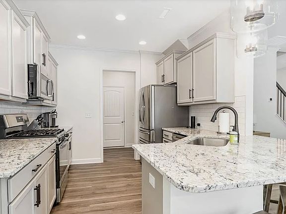 Almost new townhome in excellent Rolesville location! Less than 5 minutes to Main Street park and the new Cobblestone Village. Open and bright floorplan features EVP flooring, gas range, granite countertops, shiplap surround fireplace, and mudroom with bench. Spacious owner suite with his and hers closets. Custom banquette seating added in dining room. Two car garage and private back patio with wooded view! Can be flexible with lease terms and can provide fully furnished with utilities! Inquire today, won't last long.