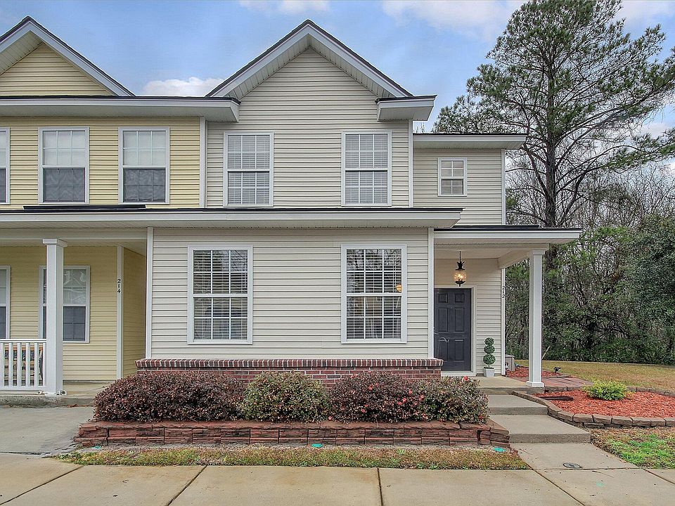 Master bedroom down and 2 nicely sized bedrooms upstairs that share a Jack and Jill bath. Don't miss the small storage space in the laundry room that has been painted to make a perfect playhouse/hideaway for kids/grands. Sellers remodeled the kitchen/great room and the island is large and beautiful.End unit allows beautiful natural light. Nice screened porch overlooking the the tranquil woods. Nice size storage room off porch. There are 2 HOA's - Liberty Hall Plantation - $400 yr and Wedgewood Townhomes - $140 a month. HOA takes care of a lot of things including: lawn maintenance, pressure washing, roof and siding repair/replacement, Termite bond and pest control, fresh pine straw twice a year. 2 assigned and marked parking spaces. Seller has HOA permission and has added some landscaping.