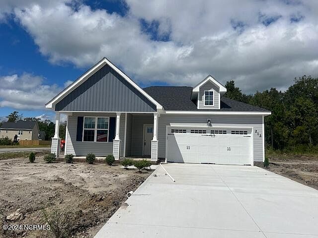 Welcome home to the ''Patriot'' by Hunter Development! At 1600 square feet, this single story three bedroom, two bath house is just what you have been searching for. In a highly sought out neighborhood with close proximity to the base, this new construction beauty is perfect! The main area is open and breezy, with the master suite on one end of the house and other bedrooms located on the other side. You'll have peaceful tranquility! There is a large master closet, huge bathroom, and the master over looks the back yard which also features a covered porch!