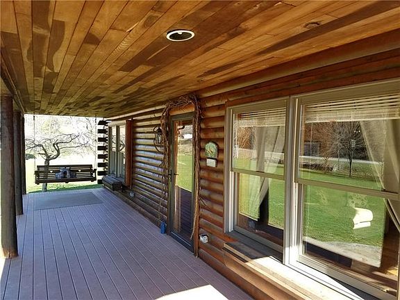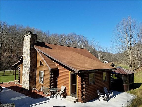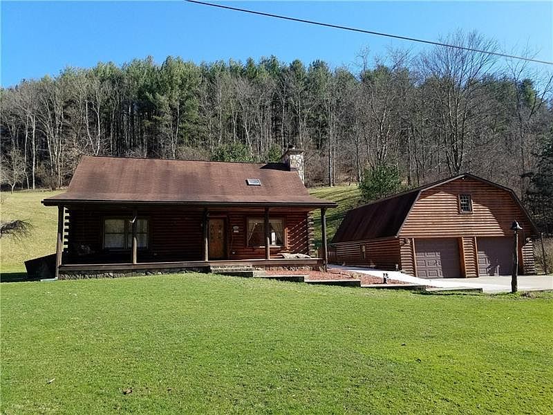 Nestled among 36 picturesque acres, this log cabin is the epitome of rustic charm. The home features a spacious front porch overlooking a babbling brook, manicured lawn, and ample parking. Once inside, you'll fall in love with the hardwood floors, stone fireplace, and vaulted ceilings. With the master bedroom, bathroom, and heated laundry room located on the main floor, you'll enjoy all that a one-level home has to offer with the bonus of a loft bedroom. Pennsylvania winters will be cozy in your new home with the option of gas heat, a gas/wood capable fireplace, outside wood burner, and back-up generator. The detached two-car garage boasts an upper living space with all of the amenities one could ask for- perfect as a mother-in-law suite, rental unit, or guest house.