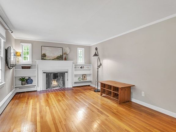 Charming cape features prime central location in Blueberry Hill district w/ well-maintained interiors & nice living space. Kitchen w/white painted cabinetry & stainless appliances opens to vaulted ceiling flex space which could be used as den, dining and/or home office w/slider leading to wood deck & fenced-in backyard. Living room features hardwoods, arched openings & custom built-in bookcases flanking wood burning fireplace. Dining room highlights custom corner cabinet, chair rail & swinging pantry door to kitchen. 1st floor bath offers tile flooring, tile wainscot & ample walk-in fiberglass shower. 2nd floor showcases 2 large bedrooms, one w/two sets of double closets, oak hardwoods & full bath w/tile flooring & white vanity w/solid surface top. Lower level offers finished area w/electric supplemental heat, laundry area w/set tub & unfinished area w/storage & bulkhead. Newer roof (’15) & natural gas, high efficiency, Navien boiler/water heater (’15) provide peace of mind & value.