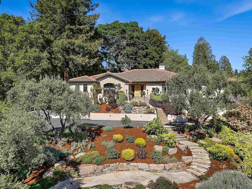 Enjoy Orinda at its finest! At the East end of Lake Cascade, you will find this spacious and private retreat just a short distance to Orinda Country Club and conveniently located close to downtown Orinda and the Community Center/Park. The stunning Santa Barbara style home is filled with natural light and surrounded by lush landscaping and flowering gardens. The beautiful home features 4 bedrms, an office and 3 full baths plus a charming guest powder room. The 3779 sq. ft of living space offers a wonderful floor plan ideal for an au-pair or in-law set up as the 4th en-suite bedroom is a private retreat located on the lower level of the home. The chef's kitchen will delight, with a full pantry, expansive island, top of the line appliances and detailed cabinetry. Al-fresco dining is simplified by the easy access to the back patio complete with fireplace and outdoor BBQ. The enchanting formal dining room welcomes large gatherings or intimate evenings. The primary suite is situated on the main level and includes a spacious spa-like bathroom. Enjoy the pool with its gracious lounging areas, canopy of trees and lush surroundings. The solar panel system with battery storage added in 2021, provides clean energy for the home along with significant electricity cost savings. Don't miss it!