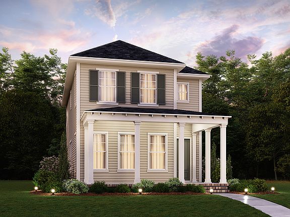 The Doty features a truly inspired owner's-suite-on-main plan with a central kitchen overlooking the main living areas, an optional wrapped front porch, plus a generous second-floor loft with the option for a 4th