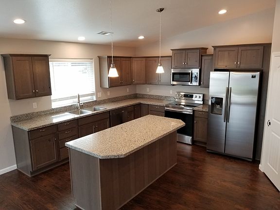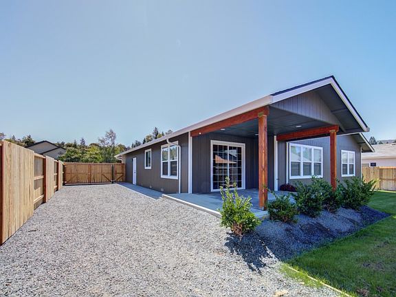Brand New Custom built home by Indura Homes! Located in a 55+ community, with all the amenities, this home features 3 bedrooms, 2 bathrooms, approx. 1700 sqft., a spacious great room with vaulted ceiling throughout the living, dining and kitchen areas. Beautiful kitchen with island, granite counters, stainless steel appliances, lots of cabinets and a walk-in pantry. There is a mix of laminate and carpet flooring throughout. Large laundry room. Covered patio out back with view of surrounding hills. Lawn front and back, along with room for RV, boat, etc along side the home. Also, has an attached finished 2 car garage. Energy efficient throughout the home with new LED flat-style can lights that allow better insulation in the ceilings, all new appliances have energy star ratings, warranties on all new appliances, ceiling insulation that exceeds code at 39 R-value. Efficiency standards by Southern Oregon Energy Trust.
