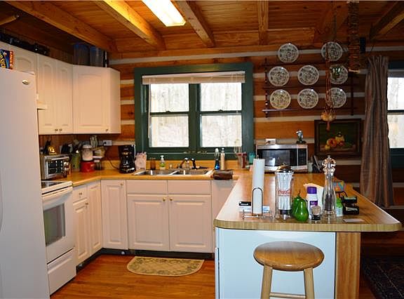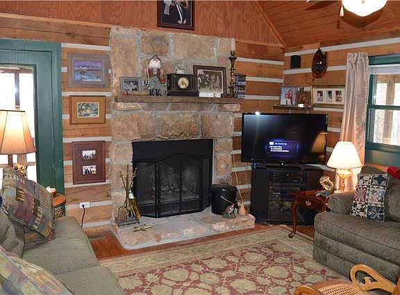 Enjoy the Peace & tranquility from this secluded Mountain Cabin situated on 10.55 acres. Living Room with wood burning fireplace, wrap around deck, hot tub. Large detached 24x24 workshop/garage with attic storage & window heat & air unit.