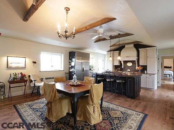 Beautiful fully renovated French country home surrounded by protected farmland. Admire the front garden from the inviting porch. Enter French doors into a great room boasting a vaulted beamed ceiling wood flooring and an old world fireplace with wood burner insert. The stylish kitchen features concrete and copper countertops SubZero fridge gas range and two tone cabinetry. Retreat to the master suite with its hardwood floors doors to the decks en-suite with dual vanities and spacious tiled shower and walk-in closet. Get to work in the office which could be used as a dining area. Two additional main floor bedrooms a full bath with tile floor and oversized tub with waterproof stucco walls and a half bath complete the first floor. The walk-out basement in-law suite includes a kitchen living room bedroom and full bath. Relax or entertain on the expansive deck while appreciating gorgeous farmland and stream views. The shed also has a chicken coup. A masterpiece!