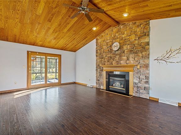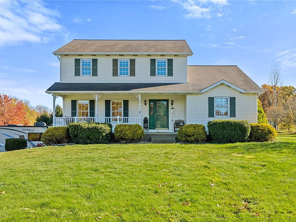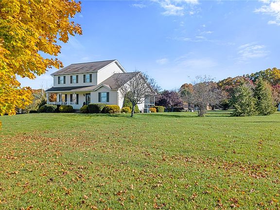 WELCOME HOME! This awesome 4 bed 2.5 bath home sits on two parcels that total 2.69 usable, flat acres. The second parcel has several fruit trees, with Cherry trees that bloom in June as well as Pear and Apple trees. Enjoy nights in front of the beautiful gas fireplace with stone backing. One bedroom on main floor along with first floor half bath for guests. From the large kitchen and dining area, to the spacious living room, out to the four seasons room, great sized deck off the back of the home, and the large deck connecting to the above ground pool in the back yard, the layout of this home provides for great times entertaining large gatherings of family and friends! Three bedrooms on the 2nd floor all have beautiful hardwood floors. The 2nd floor master includes ensuite bathroom for privacy. Basement offers finished game room/office/workout room. Hot water tank 2021. Refrigerator, dishwasher, and stove 2018.