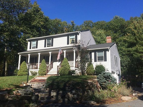 Hilltop Colonial with farmers porch and fabulous sunset views ! Open floor plan, huge dining room , country kitchen with fireplace. Large Master w/ private bath and 2 closets , A/C, town water & sewer, finished basement, 1st floor Laundry room the list goes on ! The yard is full of lilacs and perennial plantings a mahogany deck& brick patio. Brand New Roof ! There is plenty of parking for family and friends . 2 Car Garage.... Walk to High School !