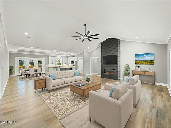 Welcome to your new home! This beautifully designed three bedroom with office space or fourth bedroom home has everything you need. Step inside to discover elegant LVP flooring throughout, offering both style and durability. The heart of the home is the open concept living area, anchored by the well appointed kitchen and oversized island with seating. A cozy electric fireplace adds warmth and charm to the living room. The abundant primary suite gives plenty of room for a sitting area to view the mountains, en suite bath offers dual closets with custom wood shelving, walk in tile shower, private water closet and double vanity. Outside, the screened porch offers a peaceful retreat, perfect for relaxing with a cup of coffee or hosting guests while taking in the breathtaking natural backdrop of the mountains. A spacious three car garage provides ample room for vehicles, storage, and even a workbench.This home is the perfect blend of comfort, modern design, and scenic beauty with loads of curb appeal.