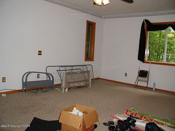 Loads of potential, needs cosmetic updates. Septic needs to be replaced or hook up to sewer. Custom built eat-in kitchen (Corian surface and oak cabinets)living room with fireplace, large family room with bar, den/office space, hot tub room, large front deck. Master bedroom suite with bath, adjoining lots included. 1.29 acres! Great location not far from second entrance. Short sale approval.