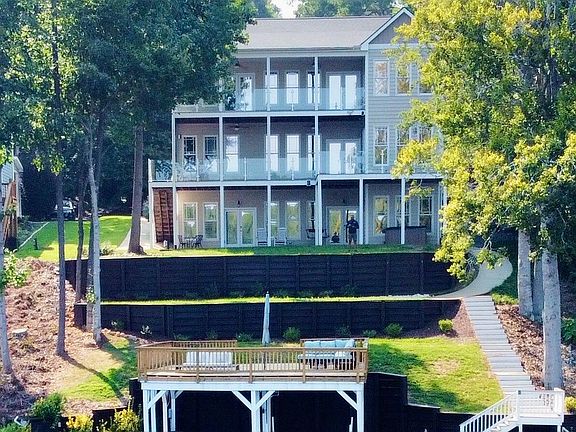 Lakefront Paradise with Unmatched Sunrises at Lake Royale Welcome to your dream retreat, a one-of-a-kind, three-story lakefront masterpiece at Lake Royale. This extraordinary home offers breathtaking panoramic views, where every sunrise paints the tranquil waters in a spectrum of vibrant colors. Seamlessly blending modern design with the serenity of nature, this residence is more than just a home, it's a sanctuary. Expansive windows and sleek glass railings invite nature indoors, offering unobstructed views from every angle. Step outside to your private, luxurious boathouse, complete with multiple slips for boats and jet skis. Whether you're entertaining guests on the rooftop deck or unwinding as the sun sets, you'll experience the lake like never before. This stunning property features an oversized three-car garage, four spacious bedrooms, a private office, and a study. Indulge in cinematic experiences in your state-of-the-art theater room, or host gatherings at the fully equipped wet bar. Fitness enthusiasts will appreciate the gym located above the garage, while ample storage ensures every need is met. As a fully integrated smart home, every aspect from lighting and cameras to thermostats, speakers, and even the fireplace can be controlled with a simple command. Nestled in the privacy of a cul-de-sac, this home offers both seclusion and the convenience of being on the prime Front side of Big Water, providing unparalleled views and easy lake access. Don't miss this rare opportunity to own a piece of paradise. Schedule your private showing today and experience the epitome of lakefront living.