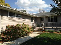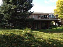 sits on 1 acre, park on south side, woods on north and East side, secluded, in floor heat in basement and garage, outside wood furnace, 2 bedrooms main floor, 2 bedrooms family room and bathroom in basement, main floor laundry, gas fireplace in main living room, walk out basement