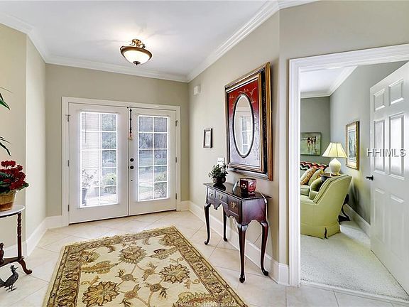 Charming residence with extensive top quality finishes throughout. This custom built home has quality woodwork, large spacious rooms, and great bedroom separation. Large, master suite with large bath and closet. Beautiful kitchen, wood cabinets. Carolina room. Large great room with fireplace. Quaint courtyard with privacy. View of lagoon and golf. Gently used as second home only. Walking trails through the park, places to ride bikes and a short stroll to the new Rose Hill Clubhouse. Access to golf, tennis, pickle ball and the Colleton River. Near shopping and schools. Will consider selling furnished or partially furnished.