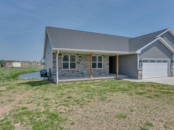 Fantastic location for this nearly new Ranch style home overlooking the Fox River. Enjoy the amenities of this gently lived in zero lot line home. Open concept design with views of the pond and Fox River. Kitchen with painted cabinets and center island. 1st Floor laundry with dual access. Master Bedroom with private bath. 2nd & 3rd bedrooms on main floor. Partially finished lower level includes a family room with patio doors leading to the rear lower level patio, full bath and bedroom 4. Plenty of storage space as well. Attached 2 car garage. Lawn, landscape and roads are all complete. Pond is a storm water pond. Just move in and enjoy!