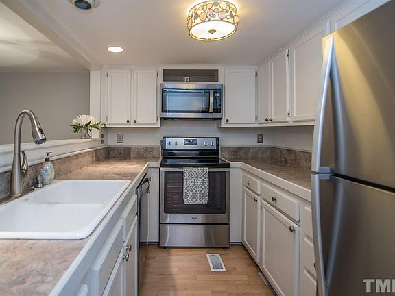 Super location off Cary Parkway and near Trader Joe's, restaurants, heart of Cary with direct access to Annie Jones greenway and park! Three bedrooms: 1st floor bedroom with adjacent full bath; as well as two bedrooms and bathrooms on the 2nd floor. Updated kitchen with bar opening to family room. Private deck overlooks greenway and wooded buffer. Washer & Dryer included. Sorry, no pets.