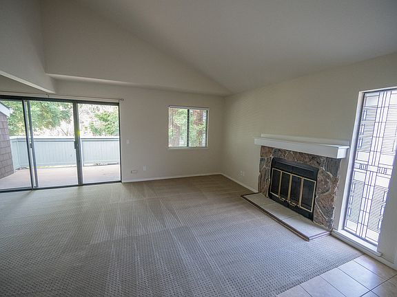 Fantastic 2 bed/2 bath upper end-unit condo in San Ramon's Heritage Place complex is complete with in-unit washer/dryer, upgraded stainless steel appliances, upgraded bathrooms, and fresh paint. The kitchen was also recently remodeled with new cabinets and countertop. There is a private balcony, 2 covered parking spaces, mirrored closets, and a wood burning fireplace. Great location within complex with redwood trees right outside living room window! Walk to coffee shops, shopping, restaurants and more within Diablo Plaza. Minutes from 680 freeway, golf courses, San Ramon City Center, award-winning schools, Bishop Ranch Business Park and much more! HOA, water and trash included in rent. Renter responsible for gas and electric. Last month's rent due at signing. No smoking permitted. 2 small pets ($30/month) allowed.