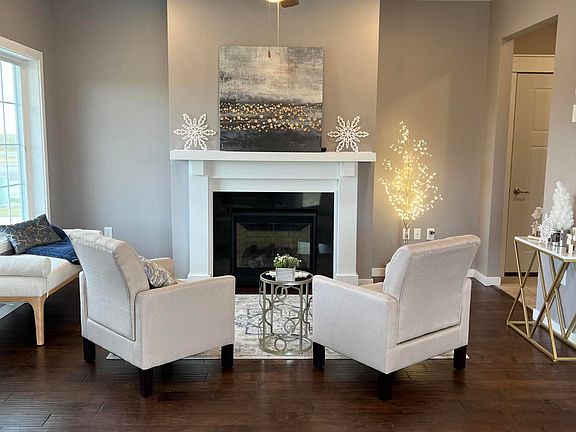 in the living room. Hardwood floors are featured on the main floor with solid surface counters, tiled bathrooms, and