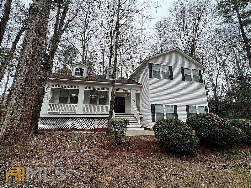Wonderful colonial style home in Powder Springs that is incredibly unique & move in ready! This 3 bed, 2 bath home has a rocking chair front porch with long driveway and separate three car garage. As soon as you step inside you are greeted by an open foyer with fireside family room that has built in shelves and vaulted ceilings. Separate dining room can easily fit the entire family. Kitchen is a fantastic size with stained cabinets, tile counters and a breakfast bar that overlooks the eat in kitchen. Upstairs includes an oversized primary suite with tall ceilings, double vanity bathroom and separate tub/shower. Two more bedrooms make up this second floor and share a hall bathroom. Large deck off the back overlooks nothing but trees! This home is set back so that neighbors won't even know you are there. A detached three car garage is fit for all your cars, toys, boats or more! It would make for the perfect workshop as well with tons of built in shelving and storage space. This unique property is a MUST SEE & is move in ready.