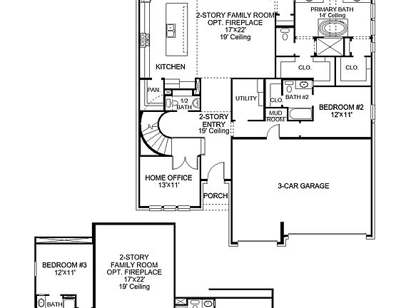 Front porch. Home office with French doors frames the two-story entry. Island kitchen features a large pantry, built-in seating space, 5-burner gas cooktop and opens to the morning area. Two-story family room features 19-foot ceilings and a wall of windows. Private primary suite with a wall of windows. Primary bath features dual vanities, garden tub, a separate glass enclosed shower and two large walk-in closets. Game room, media room and secondary bedrooms including a guest suite complete the second level. Extended covered backyard patio and 7-zone sprinkler system. Three-car garage.