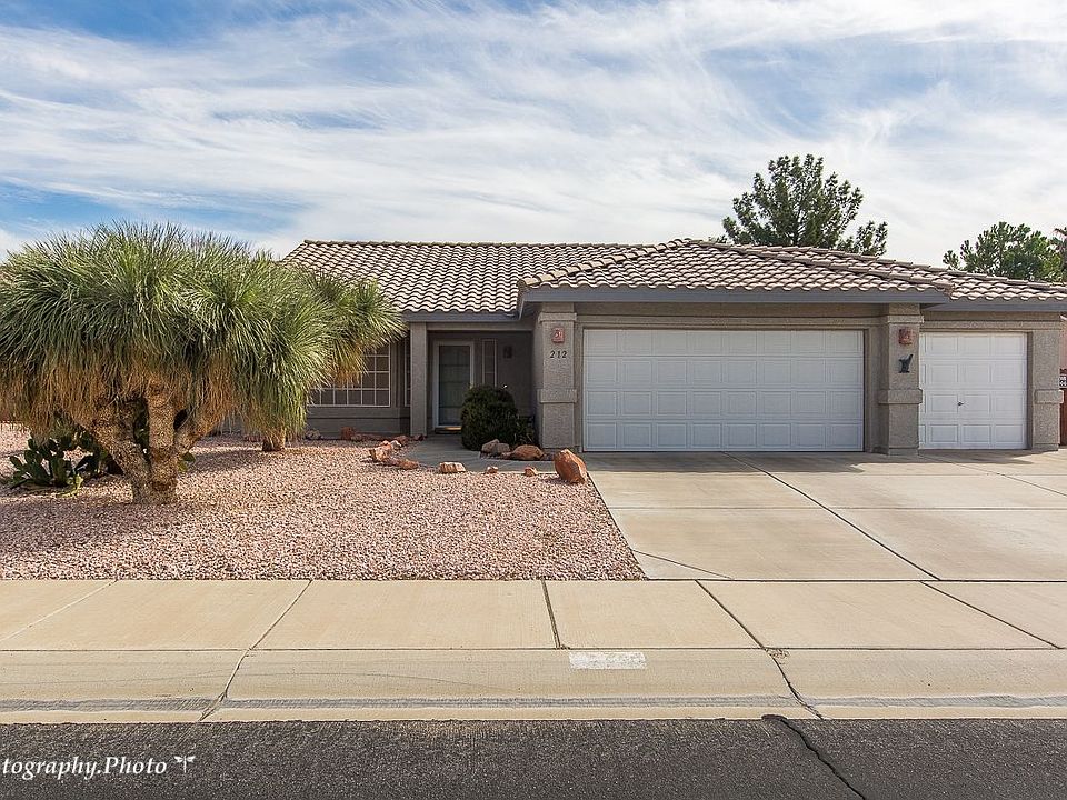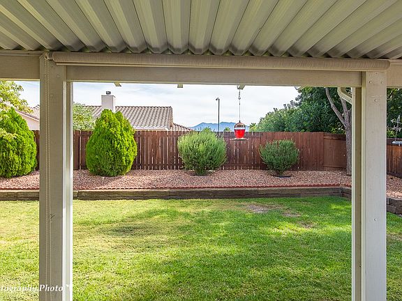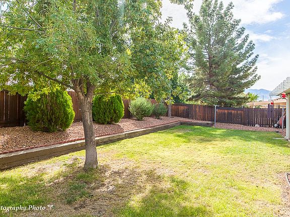 This beautiful home is located in Desert Rose, a desirable community south of I-15. This spacious home site is private, conveniently located and a rare find in a non-HOA community. The back yard eastern orientation is ideal and the two large covered patios provide more than enough room for outdoor furniture and entertaining. The yard is beautifully maintained and fully fenced. The 3 car garage and small storage shed provide ample room for vehicles, tools and various toys. The great room and the master bedroom both lead to the patio and the house is lined with windows. The home has vaulted ceilings, warm paint tones and tile floors throughout. The counter tops in the kitchen have been updated. The den off the front of the home could easily be converted to a third bedroom and has a bay window providing a lot of natural light. The home has a new HVAC system and the entire exterior of the home was recently painted. Other features include ceiling fans, water softener, R/O, storm door, window coverings, solar screens, washer, dryer, refrigerator and cabinets in the garage.