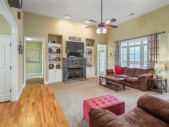 - Ceiling Fan(s), Jetted Tub, Walk-In Closet(s), Gas Logs, Fireplace, Cathedral Ceiling(s), Washer Connection, Bookcases, Wired for Sound, Walk-In Shower, Dryer Connection-Electric, Blinds, Connection - Washer, Electric Garage Door, Laundry Room Sink, Some 9' Ceilings, Ceilings-Knock Down, Connection - Dishwasher, Smoke Detector, Countertops-Solid Surface, Alarm System-Leased, Fireplace-Gas Connection