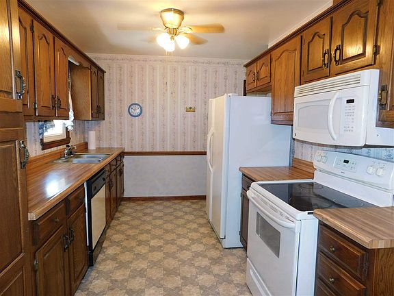 Looking for space and main floor laundry...this may be it! 1,400 square foot ranch with family room addition in 2002. Shingles on back portion of home and family room new in 2002. Laundry and half bath off family room. Money saving updates with furnace, AC and humidifier new in 2017. Electrical box, garage door and windows updated. 20x12 work shop with electricity. Nice patio and yard with ample space for gardening and play. Gas fireplace in basement not used by sellers. Right back burner on range does not work. No warranty on appliances or fireplace.
