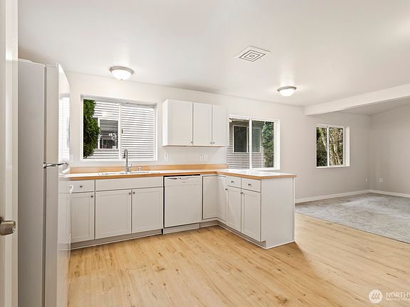 TURNKEY! This beautifully remodeled duplex is an excellent opportunity for investors or owner-occupants. Each unit offers 3 bedrooms, 2.5 baths, 1,559 square feet and a 2-car garage. Freshly renovated, featuring all-new flooring and paint, updated kitchens with new white shaker cabinets, and modernized bathrooms. The great room opens to a deck overlooking a private lush greenbelt, with stairs leading to a fenced yard. A newer roof, just four years old, adds peace of mind. Conveniently located near Boeing, shopping, transit & major commuter routes, this home is minutes from Trader Joe’s, Target and more. Perfect to live in one side and rent the other to offset your mortgage. Same, but not updated, neighboring unit rents for $2,800 per month.