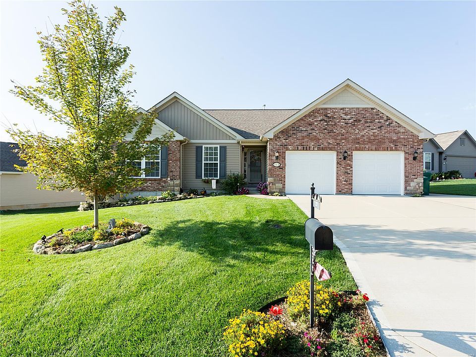 Superior ranch only 5 years young with LOTS of curb appeal in the Castle Heights subdivision! BETTER THAN BUILDING just move right in! 3 bed 3 FULL baths with nearly 2200 sq ft of living space. The great room features real hardwood floors, vaulted ceiling & stone surround gas fireplace-a great space for entertaining. The eat-in kitchen includes quartz counters, oversized island, built in microwave, gas stove, pantry & hardwood with adjoining Breakfast room w/bay leading to the stamped concrete patio. The Master suite features a shower, double vanity, linen closet & large walk-in closet with pocket door. 2 additional bedrooms, hall bath & laundry room w/pocket door complete the main floor. EXPANSIVE FINISHED LOWER LEVEL W REC ROOM, FAMILY ROOM, FULL BATH and a storage room! THOUSANDS of dollars in upgrades, to many to list! Don't forget to check out the oversized garage extension, 3rd car driveway, lawn irrigation & professional landscaping.