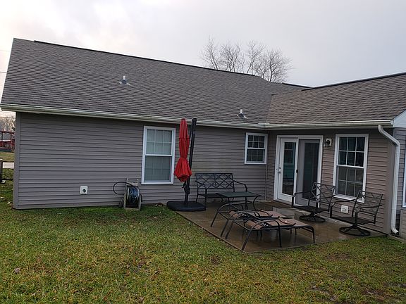 Built in 2013. 3 BR, 2 Bath home with open concept living and kitchen area with vaulted ceiling. Split bedroom design. Nice 13x13 sunroom off kitchen with exit door to a 12x14 concrete patio. Large, open backyard. 16x10 lofted yard barn for extra storage. 2 car attached garage with wide concrete driveway, perfect for RV or extra vehicles. *No Realtors please