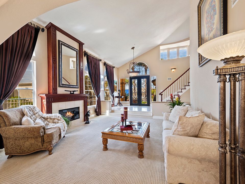 VIEW VIEW VIEW Views from Almost Every Window.You begin to feel the sense of elegance as you make your way on to the multi-colored slate walkway. The Custom Iron and Glass Double Door Entry welcomes you into an expansive entry with polished Travertine Floors. Step down into the light and bright Living Room with Fireplace and soaring ceilings which give you the feel of openness and space. View the Ocean and Golf Course through tall double pane windows. Beyond the Living Room sits the Formal Dining Room which is perfect for dinner parties. The Kitchen is off the Dining Room and is equipped with high end Appliances featuring a Dacor 6 burner stove, Double Oven and walk in pantry. Granite Counter Tops provide ample work space to work in. Large curved counter and a Wine Refrigerator . Just above the Wine Refrigerator is a lovely Crystal Cabinet. Retreat to a over sized Master Suite and enjoy the Fireplace. Step out onto the Balcony with sweeping Ocean Views. Master Bathroom features a Jacuzzi Bath , enjoy while looking out at the Ocean. Secondary Bedroom, Office with an Ocean View and Bath are also on the second level. The perfect guest Bedroom is on the entry level with adjoining full bathroom. Conveniently located Family Room is near the kitchen and back yard. The open and room Family Room has a fireplace and is a relaxing place to to read. Sunsets from the front porch with Catalina in the background. No HOA
