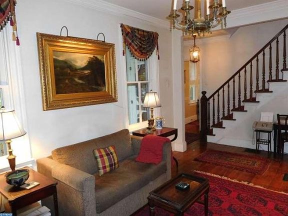 Welcome to this charming, well-maintained 8 room Victorian twin (1885) nestled among architecturally diverse single family homes in historic Doylestown Borough. Walk to everything from this upgraded residence featured on the St. Paul's Christmas House Tour. This 3-level home with basement is situated in one of the Borough's prime residential A+ neighborhoods, near Doylestown Cemetery, with a unique layout and front row seat to Doylestown's annual Memorial Day Parade on the restored, wrap around front porch. The renovated kitchen has new appliances, ample storage in maple cabinetry and a spacious breakfast area with a bay window that overlooks a South-facing bucolic garden. The living and dining rooms and entry have crown molding. The fireplace is the living rooms focal point with its Victorian mantel and Mercer tile surround, and was seen on HGTV. The powder room sports a stained glass window. The renovated, white and burgundy tiled bathroom has cherry cabinetry with linen storage and whirlpool tub. Random-width wood floors are throughout. The basement is waterproofed and has garden access. All appliances are included. There is off-street parking. This is the best of both worlds home, with the character of the old and the convenience of the modern, is move-in ready or custom-colorize it.