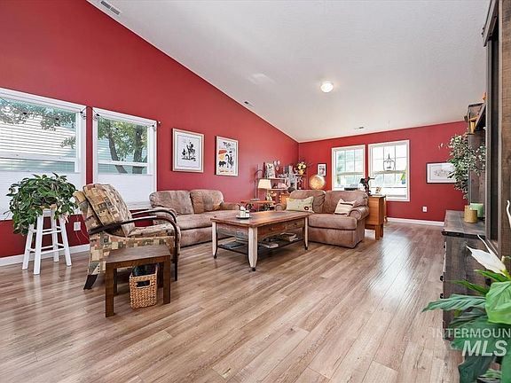 Step inside this charming home and be greeted by a bright and inviting atmosphere. Natural light pours in through an abundance of windows, showcasing the new luxury vinyl plank flooring throughout the home and highlighting the tastefully renovated kitchen. Custom cabinets, granite counters, a farm sink, new stainless steel appliances, and a chic tile backsplash are just some of the features that make this kitchen stand out, while a functional island with ample seating adds a touch of elegance. Unique details like new top-down, bottom-up cellular blinds and a beautiful window seat with custom cabinetry and shelving add to the charm. Outside, unwind under the professionally built covered patio surrounded by mature trees and low-maintenance landscaping, overlooking a pristine common area with scenic walking paths. This property is nestled in the vibrant Solitude neighborhood in northwest Meridian, complete with a community park and just moments from Settlers Park.