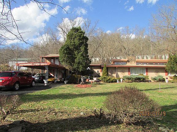 This unique home was built in 1951 to copy the Frank Lloyd Wright construction. Features lots of windows for natural light. Some interior walls have brick exposed. Bi-level floor plan. 2 BR/1BA. Possible 3rd bedroom. Carpet throughout but has nice hardwood underneath. Property also has a detached two story in-law suite and carport. Large lot with room to roam.