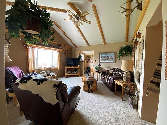STUNNING remodeled 1922 ranch style home on 13.38 acres. 2 Bedroom 2 Bathroom home. Hand-scraped lodge pole accented vaulted ceiling in living room. Open kitchen with island to dining area. Laundry room on main level. This home features a true master suite with full bathroom and walk-in closet. Watch the sunrise through the huge master bedroom picture window that looks out over the east patio and pasture. Beautifully maintained log siding and perfectly manicured landscaping.