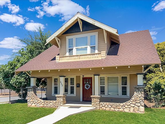 Welcome to this beautiful Craftsman Style Home in the heart of Porterville! This two story gem features five bedrooms and two and a half baths with dual pane windows throughout. Even better, the master bedroom is downstairs! The common spaces are huge, with updated laminate flooring. perfect for entertaining. Upstairs, you will find four bedrooms and a full bathroom, along with a spacious balcony. The well maintained, fenced-in back yard has plenty of grass for children or pets, along with a couple of orange trees. Situated only minutes away from Downtown Porterville, restaurants and more, this home won't last long. Call your favorite agent and schedule your showing today!