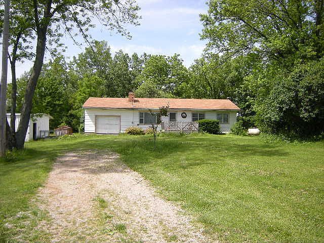2 Bedroom home on 1.67 acres with full basement, one car attached garage and an extra 2 car detached garage. Wood burning fireplace in living room.