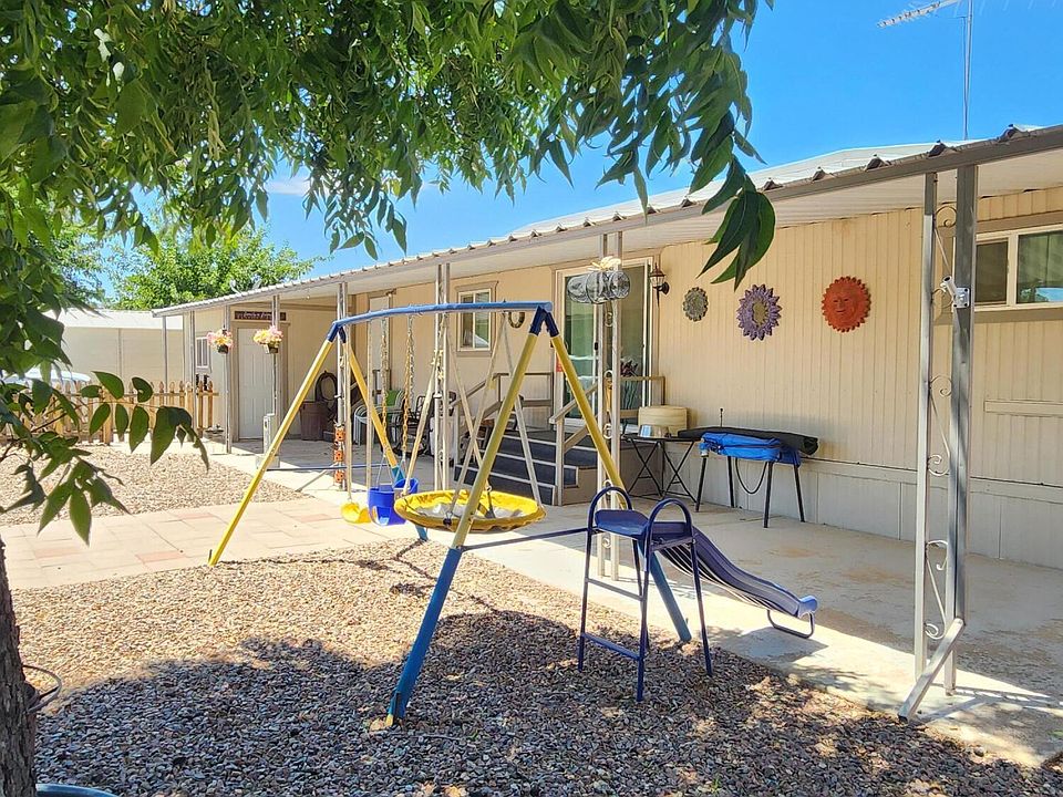 WITH $50K DOWN,OWC. ONCE YOU ENTER THE PROPERTY YOU WILL SEE THE STRUCTURALLY SOUND RENOVATIONS THAT WERE DONE IN 2020. THE OUTSIDE UNIT HAS A FRONT ACCESS AND SIDE DOOR,APPROXI-MATELY 30 FT LONG AND WIDE ENOUGH TO PARK YOUR ATV, SMALL BOAT, OR OTHER TOYS. AN OUTSIDE LAUNDRY HAS AN ELECTRIC WASHER AND EQUIPPED TO ADD A PROPANE GAS DRYER. THE FRONT YARD HAS A WOODEN FENCE AND WIRE FENCING AT THE BACK. THE COVERED PATIO IS THE LENGTH OF THE HOME WHERE YOU WILL BE ABLE TO SIT AND RELAX IN THE SHADE. STEP UP TO THE SLIDING GLASS DOOR LEADING TO THE LIVING ROOM. THE SPLIT BEDROOM PLAN IS CONVENIENT FOR PRIVACY. 2ND BEDROOM HAS ITS OWN 1/4 BATH. LARGER BEDROOM WILL EASILY HOLD A