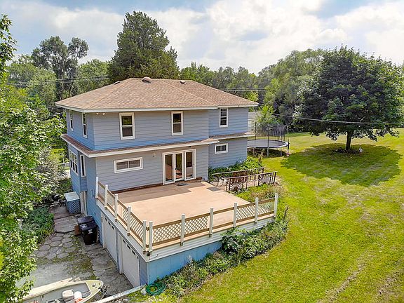Amazing location over an acre in the Village with treeline privacy and 2 story shed. You'll love the park like setting. Unique open floor plan and loads of character, with original hardwood floors. Kitchen open to large dining area and great room, and patio doors opening to huge deck perfect for bar-b-q's and entertaining. The bedrooms are oversized with plenty of closets. Almost the entire home freshly painted, all neutral and off white, so you can move right in. Lower level, with tons of storage and even walk out patio door to finish off if more space is needed. 1/2 bath in lower level could be remodeled when necessary.