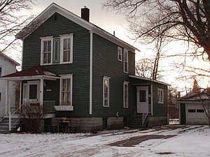 Charming historical home with wood floors and a double living room. Possibly the first home built on this block. New kitchen floor, counter top and backsplash with GFCI outlets. New furnace in 2012 and updated electrical panel. A bonus room upstairs is plumbed and wired for a kitchenette but could be converted to a spare bedroom, hobby room or laundry area. Stackable washer/dryer on main floor or individual units can be used in basement. Large city yard. This home has lots of room for the price and in a convenient location.