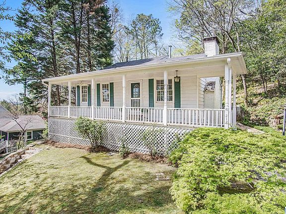 One of the best front porch views in all of Homewood! This southern style cabin is privately located on a quiet dead end street and surrounded by woods and nature. The main level features a living room with wood burning fireplace & built-ins, dining room w/a wooded view, and original hardwood flooring. Kitchen features a eat in area, walk-in pantry,  updated countertops, built in electric cooktop/oven, built in microwave, fridge, dishwasher and access to the stone lined patio. Two main level bedrooms share a full bathroom with a tub/shower combo. Upstairs features a light-filled third bedroom or office space w/tons of natural light. Downstairs you will find additional space for a second den or workout room, complete with a full bathroom featuring a shower.  Main level laundry is conveniently located. This home has so much potential and room for expansion being located on 3 lots for 0.482 acres. The lot next door(to left) is also being sold separately.