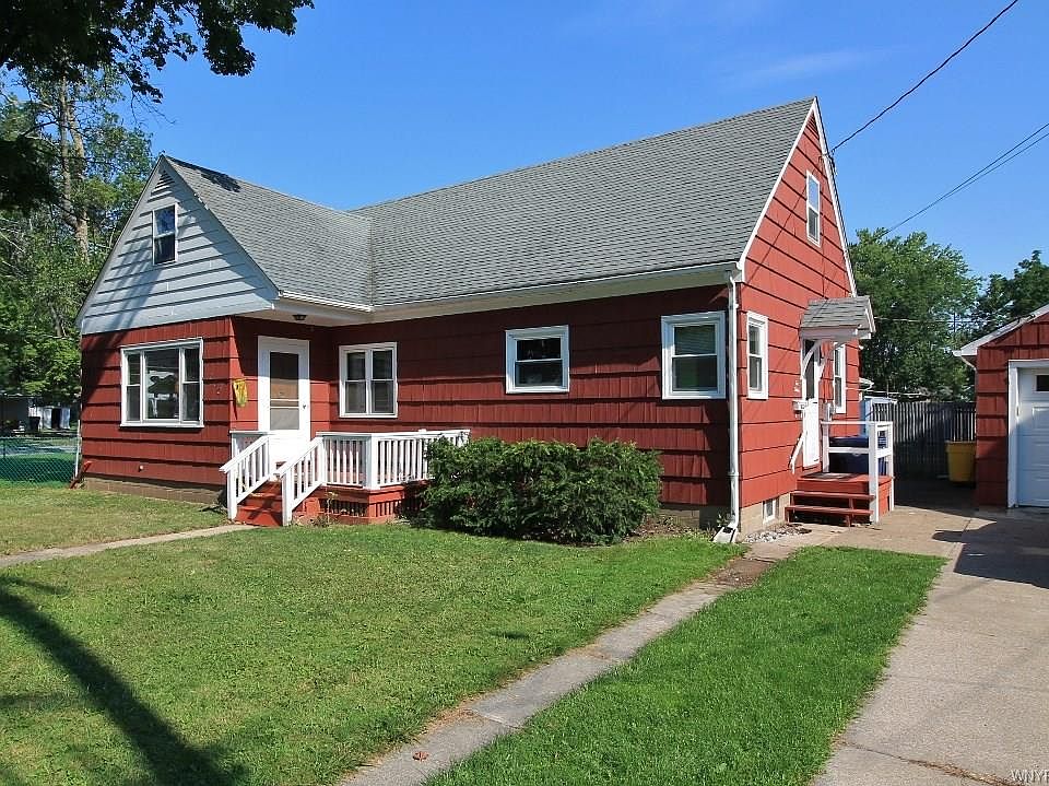 Roomy 3 bdrm Cape is set on a corner lot fully fence yard with living rm, dining rm, kitchen flows nicely, loads of space. 2 first floor bedroom, large master room upstairs with knotty pine built-in dresser all new windows, exterior freshly painted high efficiency furnace with a/c. Enjoy your morning coffee on your front deck and take in views of brick lined hyde park . Walking distance to schools.