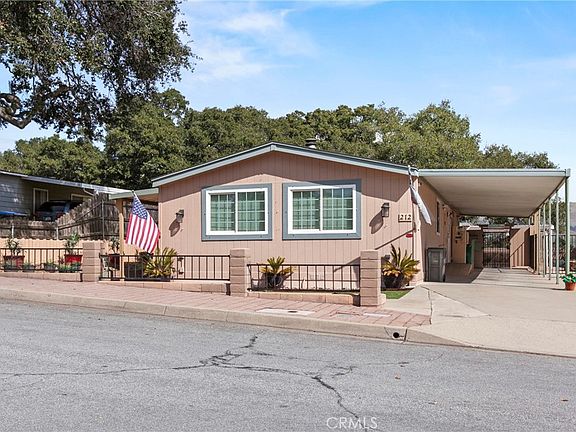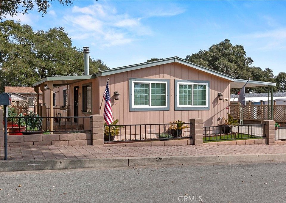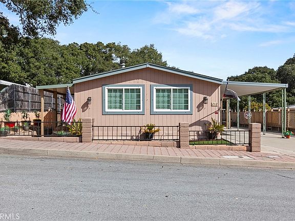 Welcome to 212 Encino in the Folkert Oaks Community, a double wide 1344 sqft 2 bedroom, 2 bath manufactured home on owned land with a permanent foundation (433a) already installed, in phenomenal shape. Upon walking into the home, you are greeted by an open concept living room and dining room, equip with a gas fireplace in the living room. The kitchen is good size with its own island and newer appliances. The guest suite and primary are near the back of the home, the guest suite equip with its own bathroom and the primary, a full bath with a soaking tub. No HOA dues at all in this community. 336 sqft of extra permitted storage is an extra benefit, built in behind the home, could be turned into an ADU potentially (check with the county). RV parking is also available with sewer hook ups, along with a long carport for extra parking. Tons of hand laid brick work lines the backyard landscaping adding a nice finishing touch to the yard along with 3 raised flower beds. You will find open space land behind the home, so you have no neighbors behind you. Here is your opportunity to own on the central coast for under 500K! Mobile home financing is available due to having the permanent foundation. The home also has air conditioning (A/C)