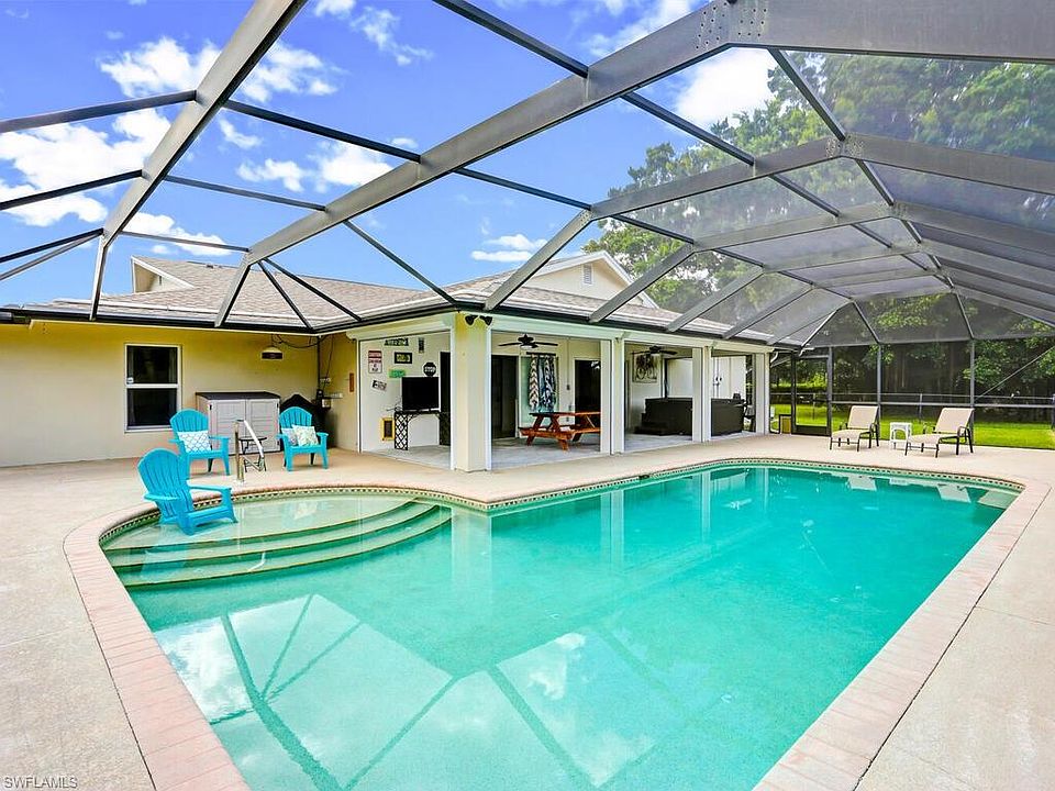The uncomplicated lifestyle! Hurricane impact windows - impact front door - new roof (2018) - oversized solar heated pool with spacious sundeck - long paver driveway - side load 2 car garage - quiet cul-de-sac - private backyard - even fenced area for your dog with their own back access! Move in to this sweet Family Retreat! Looking for the perfect spacious single family home of your dreams? 2579 Sq. Ft. of living w/4 BR - 3 full baths (including 2 MBR suites!). Hurricane shutters for lanai sliders add protection. The Main MBR suite is beautiful, with huge walk in closet, wow bathroom with large walk in shower & double sinks. MBR has separate AC unit! The large laundry room has double sinks, lots of storage and access to double side load garage. This spacious beauty won't last!
