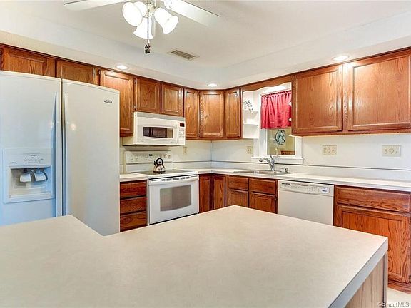Don't let the outside of this terrific house fool you!! Wonderful 2300+ sq ft home w/ 4 bedrooms & 2.5 baths on East Side of Meriden!! This home features a huge bonus/family room w/ cathedral ceilings, hardwood floors, gas fireplace, 1/2 bath, laundry room and sliders to a multi tiered deck overlooking a manicured yard and above ground pool. An added bonus is the solar panels (owned not leased) that helps TREMENDOUSLY with electric cost. All 4 bedrooms are great in size and new hardwood flooring in master bedroom was just installed. The main floor has an inviting living room w/fireplace, hardwood floors and opens into the kitchen/dining area the lower area has a nice size office w a full bath w/access to the 2 car garage. This home should be on your list to see!! You won't be disappointed!!