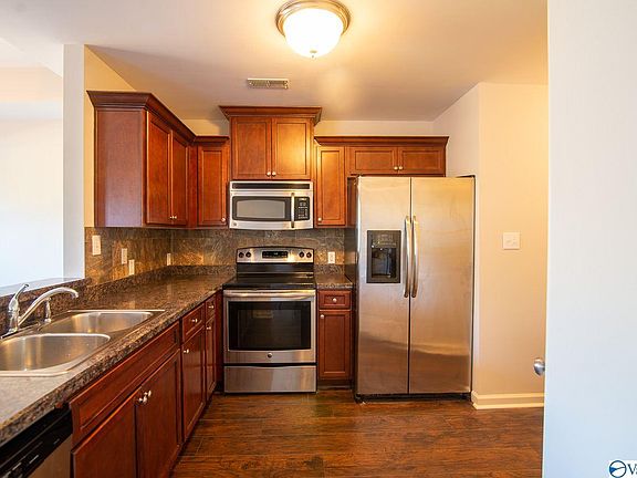 Beautiful 3 bedroom 3 bath townhome features 2 car garage, new paint, new laminate flooring, ss appliances, ceiling fans throughout. Dining room features trey ceiling overlooking the private treed backyard & pond. Spacious master bedroom w/ his and her closets, trey ceiling. Loft area. Wonderful location, this home backs up to the wild life sanctuary. Enjoy the maintenance free yard, beautiful home and a community full of amenities! Community offers a fantastic clubhouse, fitness center, large zero entry pool, basket ball & tennis courts, playground & kids clubhouse. Convenient to Redstone Gate 7, Boeing, Research Park, New Stadium, Bridgestreet.