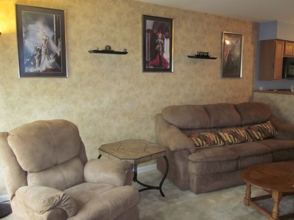 Ranch style end unit in Stony Pointe. All new carpet. Open floor plan. Large Master bedroom with full bath. 2nd bedroom is a good size and has full bath next to the bedroom. Extended countertop space for bar stools beside dining area for a breakfast nook. Patio area off Dining area. Plenty of closet space. Full unfinished basement. These ranch style units do not come on the market that often, so schedule an appointment today.