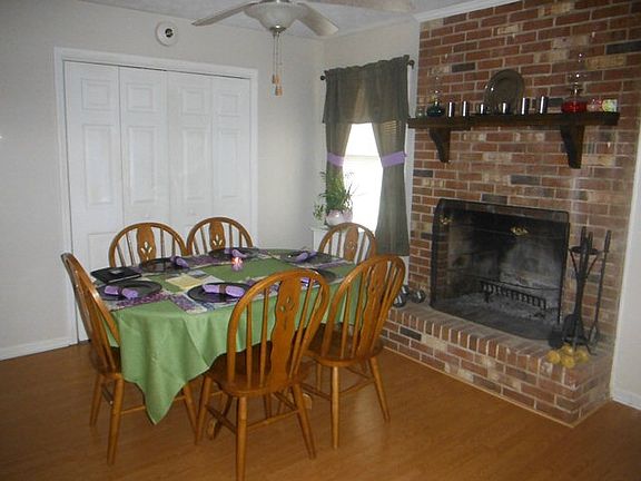This charming three bedroom two bath has a lovely open kitchen and dining area. The brick fireplace in the dining area is a cozy and inviting space. The large lot has a fully fenced back yard. There is a large detached garage with 220 electrical service and upper level storage.