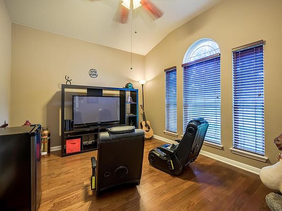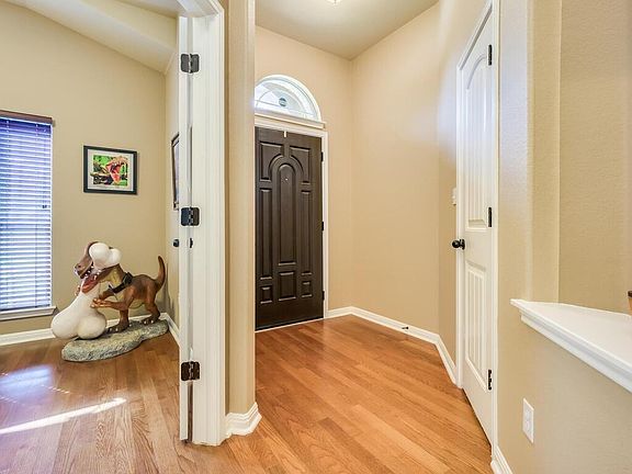 Great 1 story home in popular neighborhood with nice amenities; 2.5 CAR GARAGE with storage closet; 4 bedrooms PLUS a study with french doors; Backyard with lots of trees; Kitchen has stainless steel appliances and refrigerator conveys, granite counters and a 4 burner gas range; Wood flooring in Entry, Office, Formal Dining and Family Room; 2 Master Closets; Separate shower and garden tub in Master Bath; Covered back patio; Ring Doorbell does not convey; plumbed for water softener